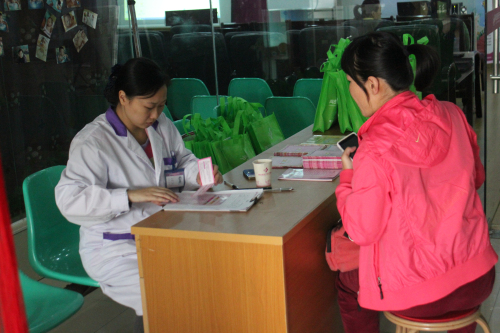 孕妈妈课堂定于下午2:00签到,还不到两点就有孕妈妈陆续到达现场签到,工作人员认真的作者登记记录。