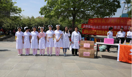 2016年5月7日上午10:00,青岛新阳光妇产医院携手李沧在线在李村文化广场开展了向新疆和田地区捐赠旧衣物和学习用品的爱心活动。