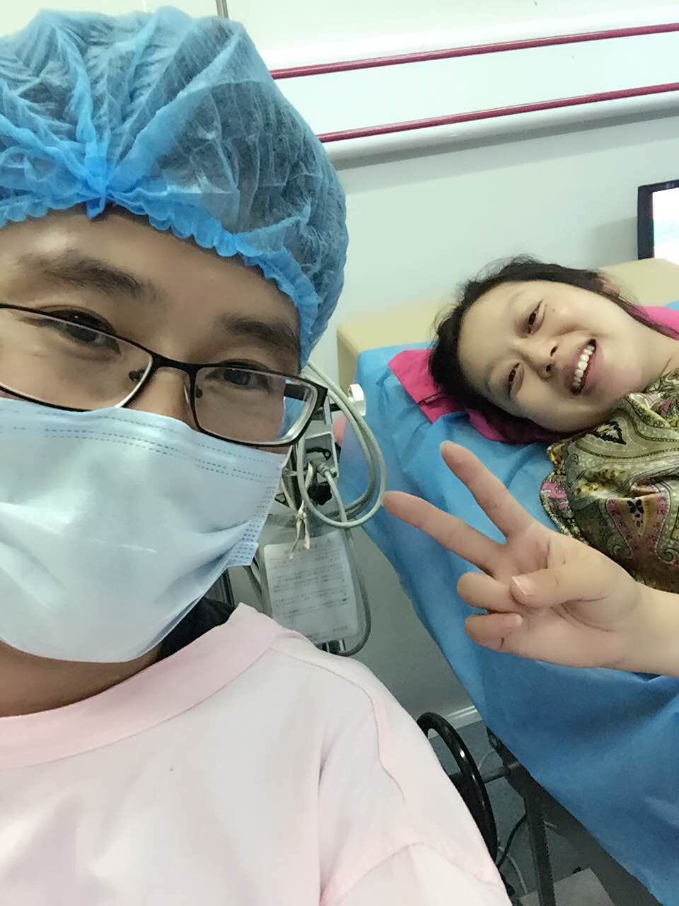 产床上,陈女士微笑着看着镜头,她的老公忙前忙后的给漂亮的老婆拍各种照片。青岛新阳光妇产医院产科主任姜淑平跟陈女士讲,你是我从业30年来见过的为数不多的,敢笑着生孩子的妈妈,你真的太勇敢了!
