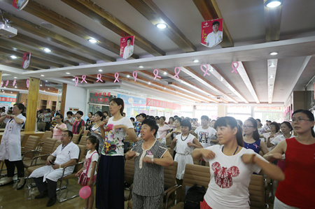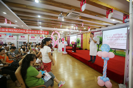8月7日上午9点30分,由青岛新阳光妇产医院主办的粉红丝带(青岛站)关爱乳腺健康公益活动在学术报告厅如期举行,100余名育龄女性参加了本次活动,本次活动由乳腺彩超免费检查、乳腺健康知识讲座、学习乳房保健操三部分组成。